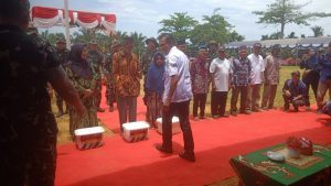 Sekretaris Kecamatan Bapak Rusmadi, SKM dan Bapak Jhoni Kastraminata, S.Pd,. M.AP Dalam Ranka Menghadiri Kegiatan Upacara Penutupan TMMD Reguler ke 127 TA 2026 di Lapangan Sepak Bola Desa Tribuana Kecamatan Telaga Antang