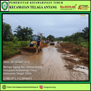 Pemerintah Kecamatan Telaga Antang bersama Forkopincam, Perusahaan Sawit, Koperasi, dan Pengusaha Lokal melakukan Gotong Royong perbaikan Jalan Sangai (Jalan Andjar Soegianto) sepanjang 6 km mulai 8 Desember 2025. Kegiatan ini dipimpin Camat Joko Ariyadi Setiawan dan Ketua Tim Pak Tenung sebagai bentuk dukungan terhadap visi Bupati serta menjelang Natal dan Tahun Baru. Perbaikan dilakukan selama ±8 hari dengan penimbunan lubang, pembuatan drainase sederhana, dan pembersihan jalan. Warga menyambut baik karena jalan rusak selama dua tahun terakhir telah mengganggu keselamatan dan kelancaran ekonomi.